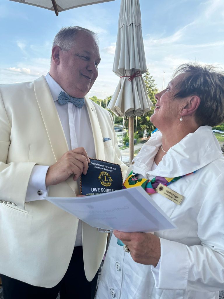 Wenn ich euch beide anschaue, dich liebe Dana Wustrow als frisch gekürte Präsidentin, die sich mutig mit diesem Schritt für eine aktive Lions-Laufbahn entschieden hat und Inge als alter Hase, die mit ihren 26 engagierten Lions-Jahren auf unzählige Highlights zurückblicken kann, könnte der Gegensatz nicht größer sein. Es ist ungefähr so als hättet ihr beide einen besonderen Lions-Ordner mit der Aufschrift: „Erfahrungen sammeln“. Bei dir liebe Dana, ist im Ordner noch viel Platz, während Inges Ordner bereits prall gefüllt ist. Damit steht unser Club an einer spannenden Schwelle.
