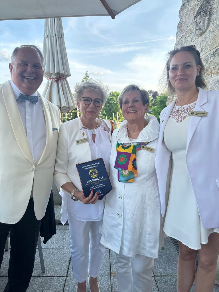 An dieser Stelle sei auch erwähnt, dass du die Idee des Distrikt-Neujahrsempfangs mit dem Motto „Lions für Lions“ das erste Mal 2006, als du zum ersten Mal Präsidentin warst, im Olympiastadion durchgeführt hast, zusammen mit dem damaligen DG Dr. med. Andreas Huth und wie wir alle wissen, dass du danach Jahr für Jahr mit großem Einsatz und wachsender Expertise an der Planung aller weiteren NJE beteiligt warst, und sogar jetzt noch, zusammen mit Christine Mögling, die Location für das kommende Jahr im Januar 2026 fest buchen konntest.