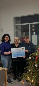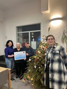 Am 22.12.2025 haben unsere Mitglieder Dorothee Schuler und Claudia Peter den Scheck in Höhe von € 1000.00 aus den Einnahmen vom diesjährigen Weihnachtsmarkt an Frau Kulik von Evas Haltestelle überreicht. Ebenso wurden die Sachspenden, die auf der diesjährigen Weihnachtsfeier des Lions Clubs eingesammelt wurden, übergeben.